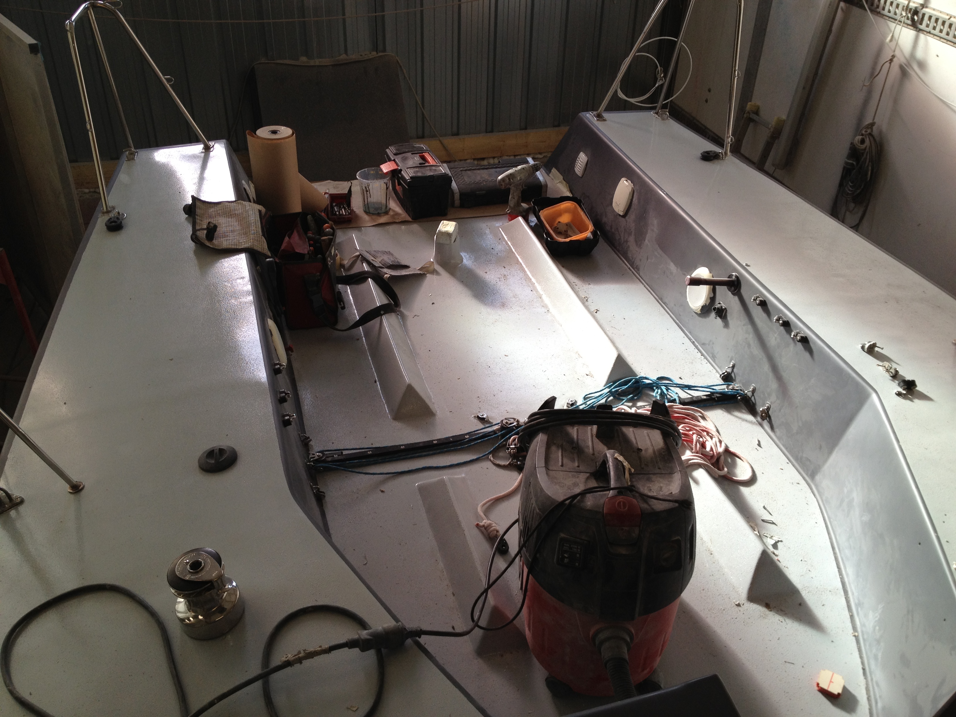 Reste les étagères et le meuble de cuisine à mettre à poste, le mât a regréer et la carène à préparer, enduit et antifouling.