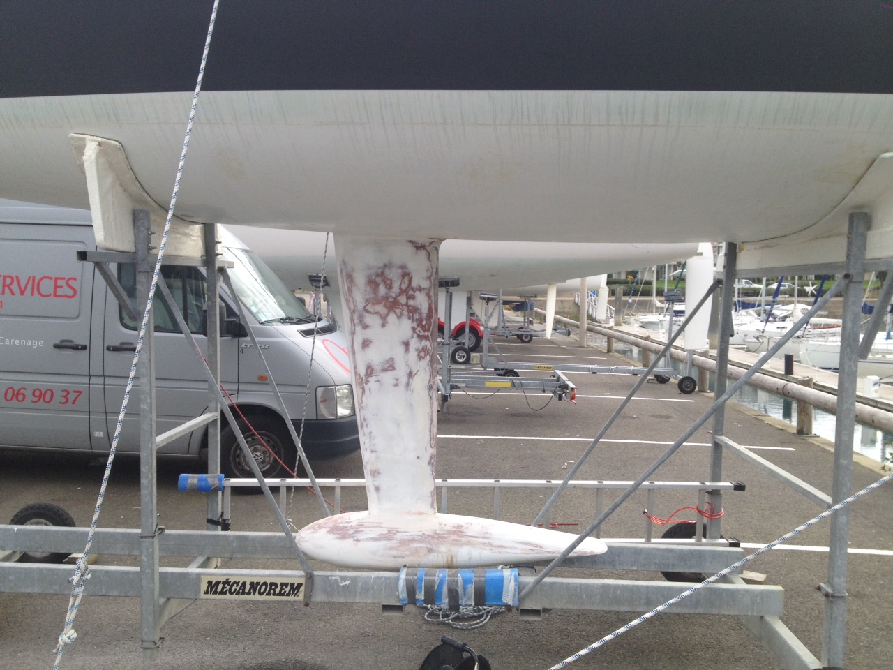 Ponçage, enduit, pose d’un antifouling A4Tspeed.