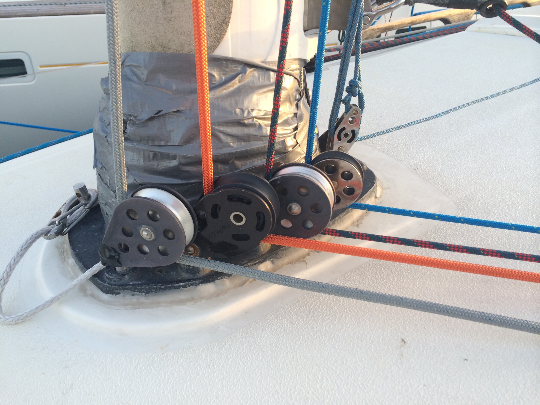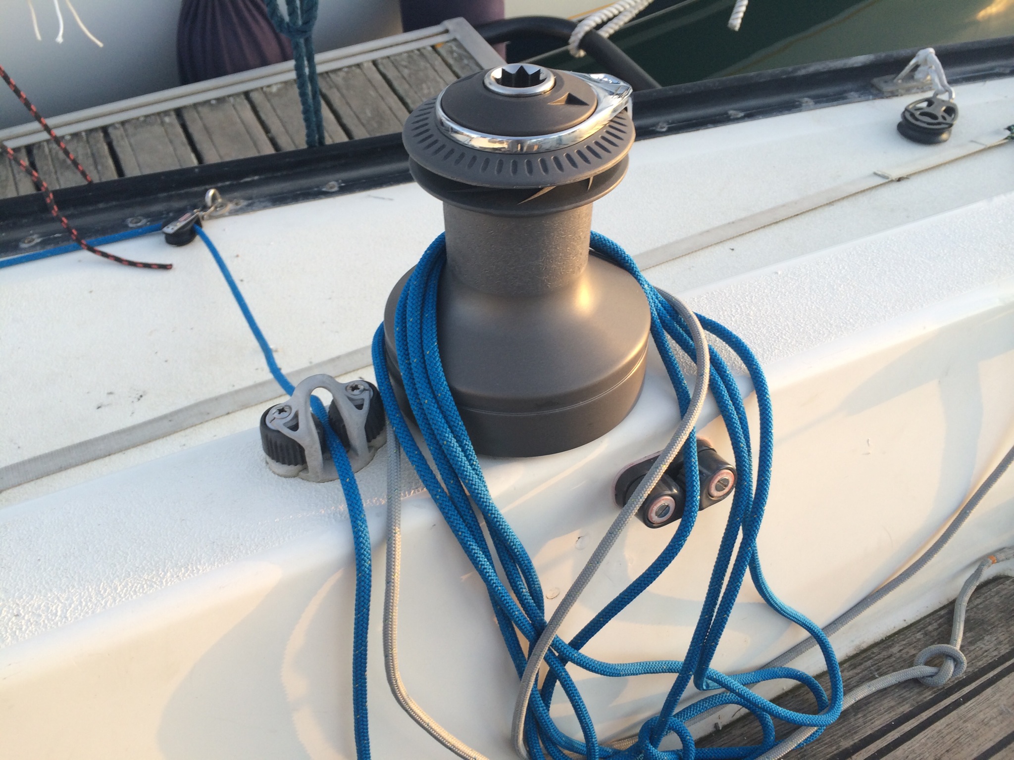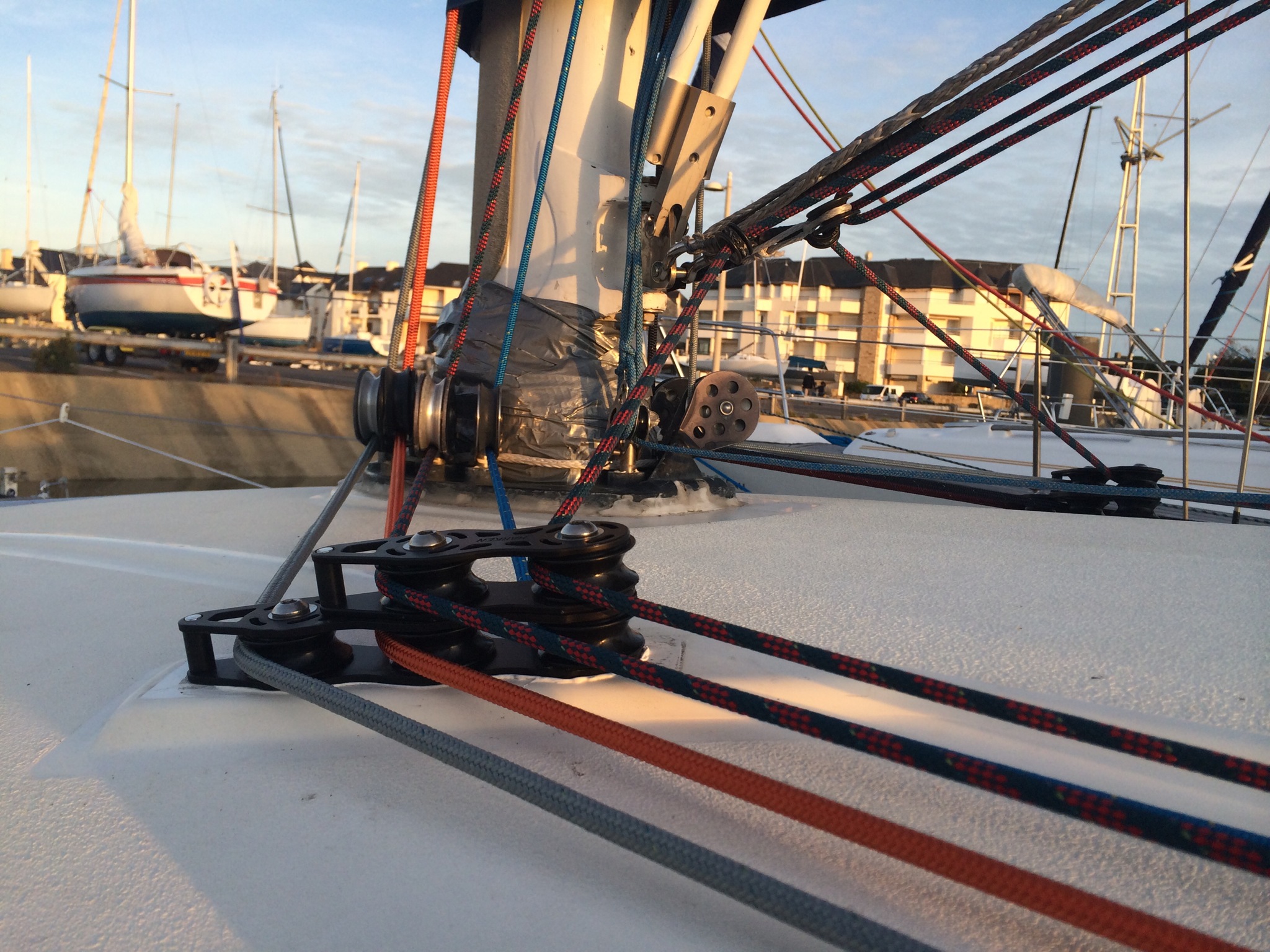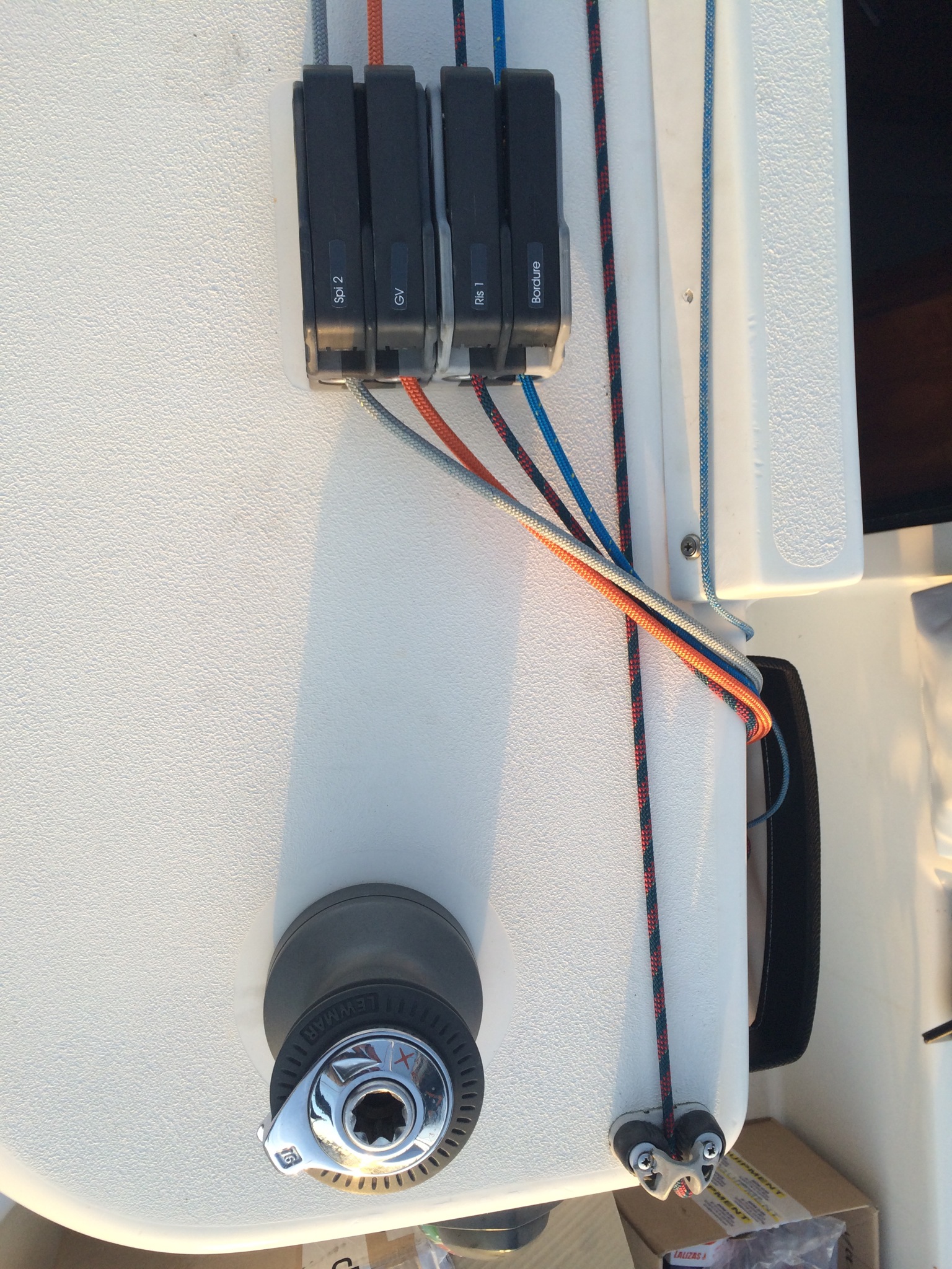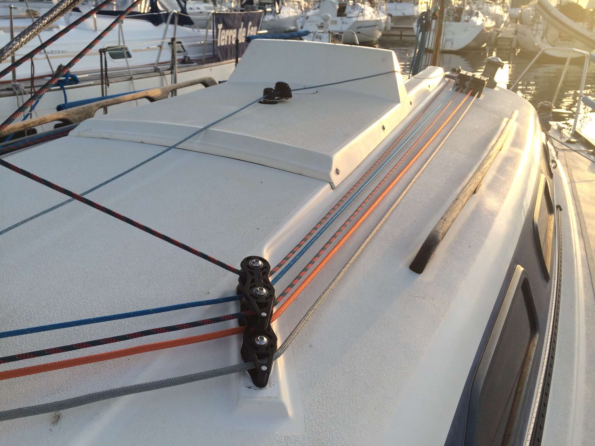 . Greement: drisses changée, winchs de génois remplacés, accastillage remplaces et optimises, ne reste plus que l étai à mettre en place.