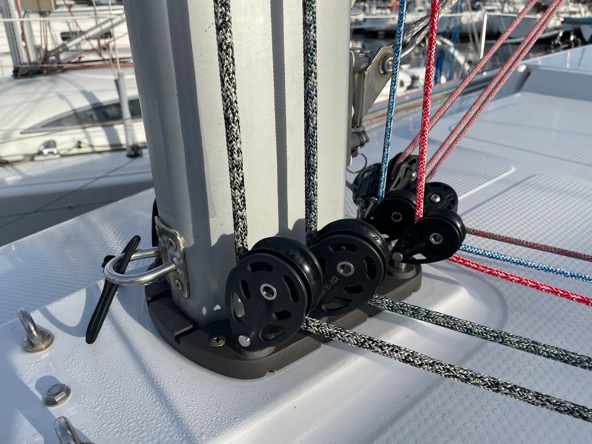 Dans une logique de fiabilité maximale, le gréement courant et dormant a été entièrement remplacé. Cordages, manœuvres et éléments structurels ont été sélectionnés avec soin pour répondre aux exigences de performance, de sécurité et de longévité.