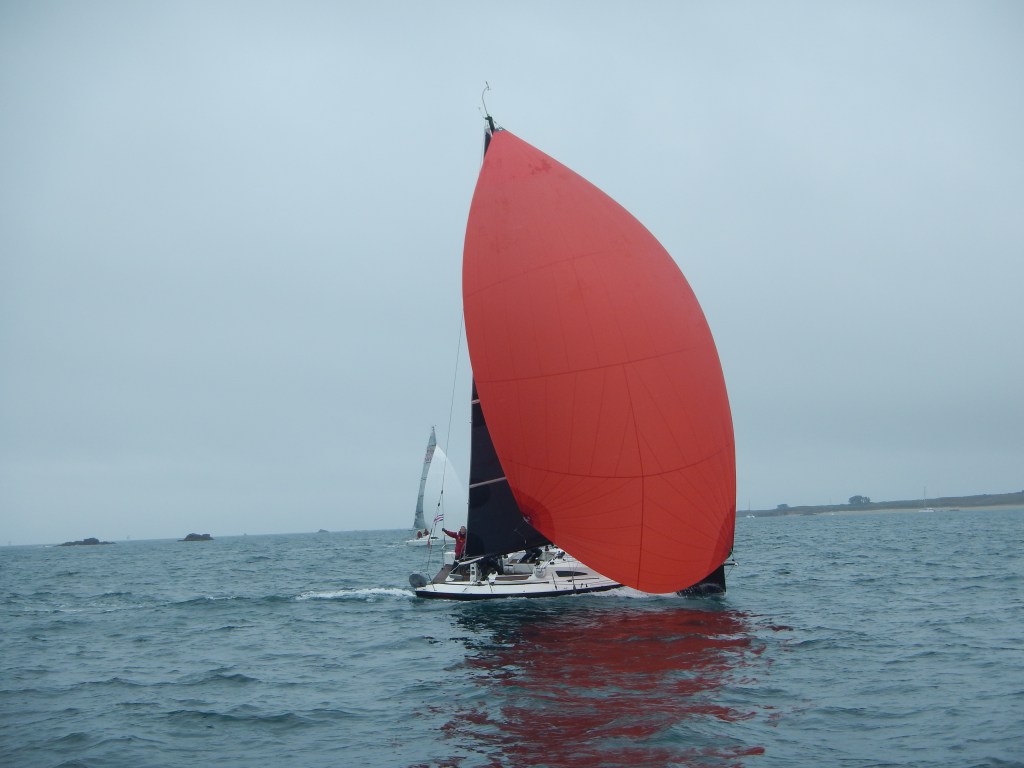 Entourés de nos concurrents cibles, JPK 9.60 et autres Sunfast 3200 participant à cette régate, nous atteignons le phare des Grands Cardinaux à une place qui nous semble être la nôtre. envoi de spi, et là, comme assez rarement, un noeud se forme dans la voile à l’envoi, le temps d’affaler et de renvoyer, le phare est paré et nous renvoyons notre S2 (spi symétrique) tribord amures pour rejoindre la ligne d’arrivée.