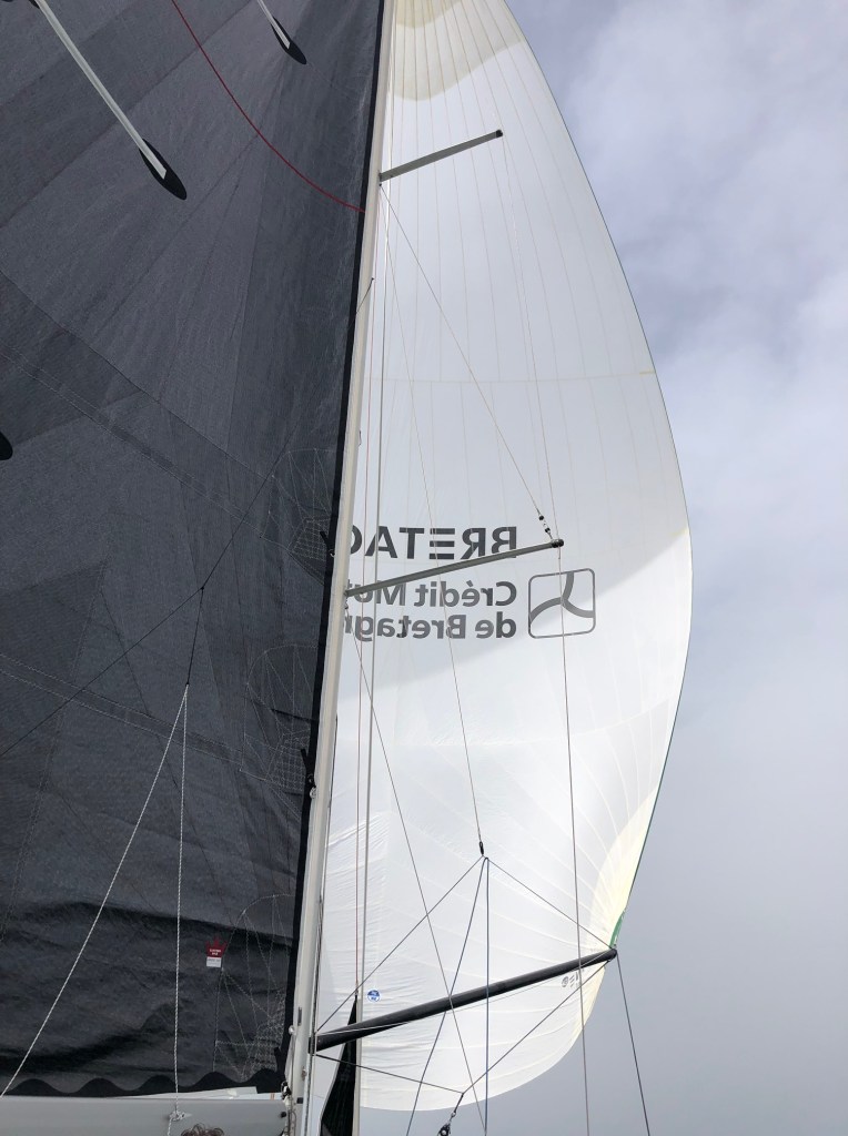 Nous rentrons à Lorient sous voiles et en profitons pour gréer notre Code et en chercher les réglages. En vain. Nous décidons de remiser cette voile pour le reste de la semaine, ne comprenant pas son fonctionnement (après échange avec notre voilier, nous avons ensuite compris que nous n’utilisions pas cette voile dans son bon range.