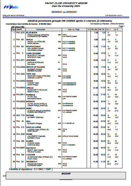 Particularité de cette régate qui se courre en double et en Osiris, les départs se font en fonction des ratings de chaque bateaux avec un calcul d’allégeance de temps sur la ligne de départ et non sur la ligne d’arrivée