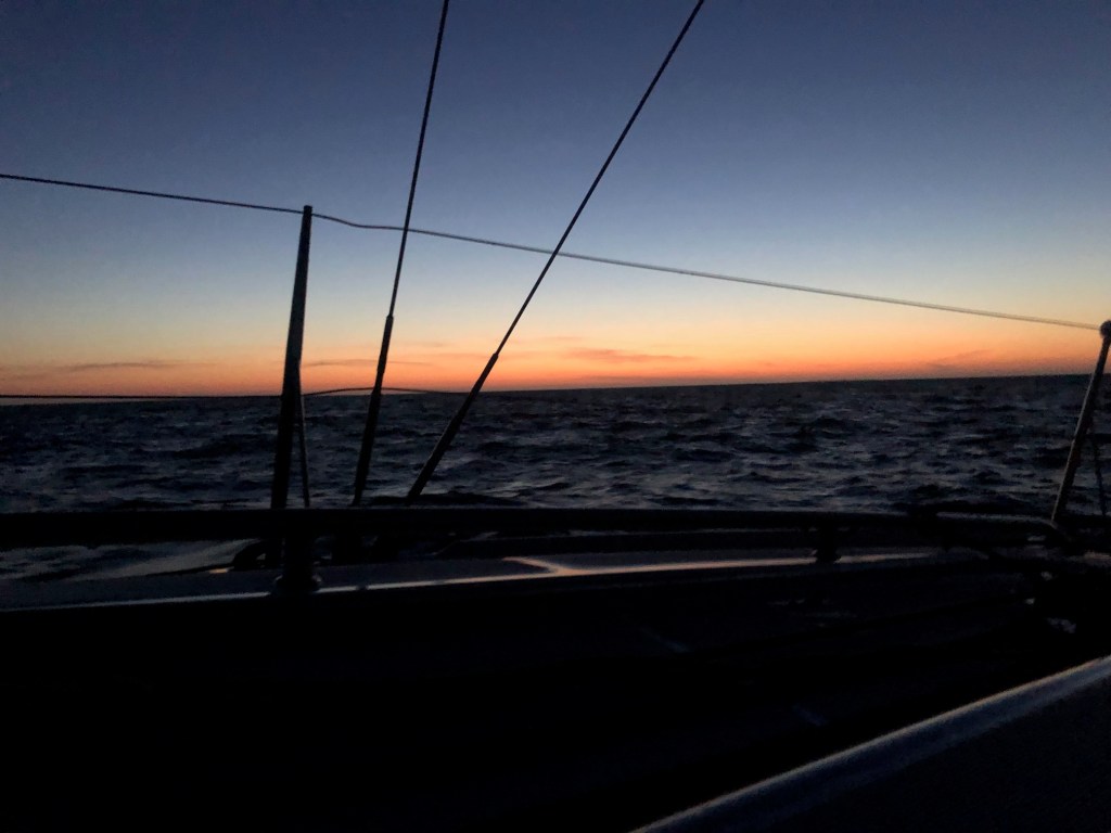Nous nous organisons donc en quart de 2 heures dès que la nuit tombe, c’est à dire deux heures de repos puis deux heures à barrer et régler.