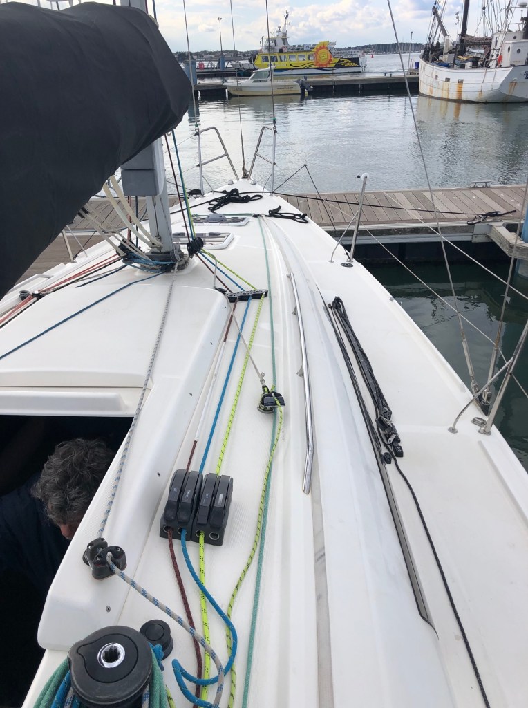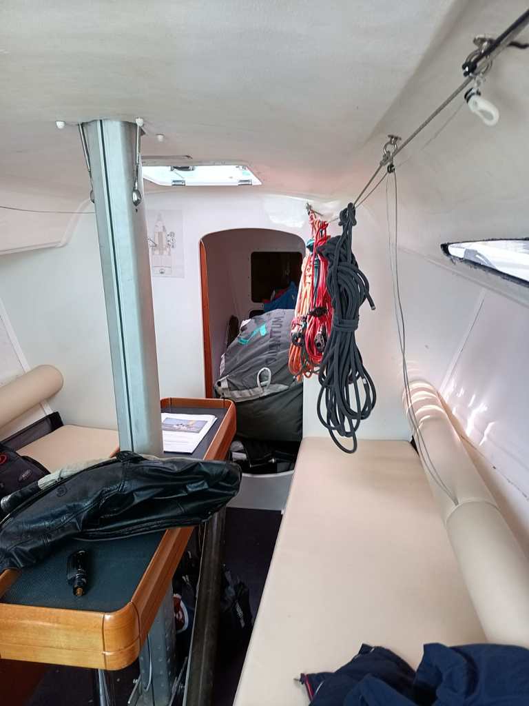 Samedi 24: avis de vent fort et pluie annoncée toute la journée. Nous prenons la décision de ne pas courir cette manche. Certains concurrents s’étant engagé sur cette manche sont rapidement rentrés au port après le départ. Un grand nombre de DNF sur cette première manche