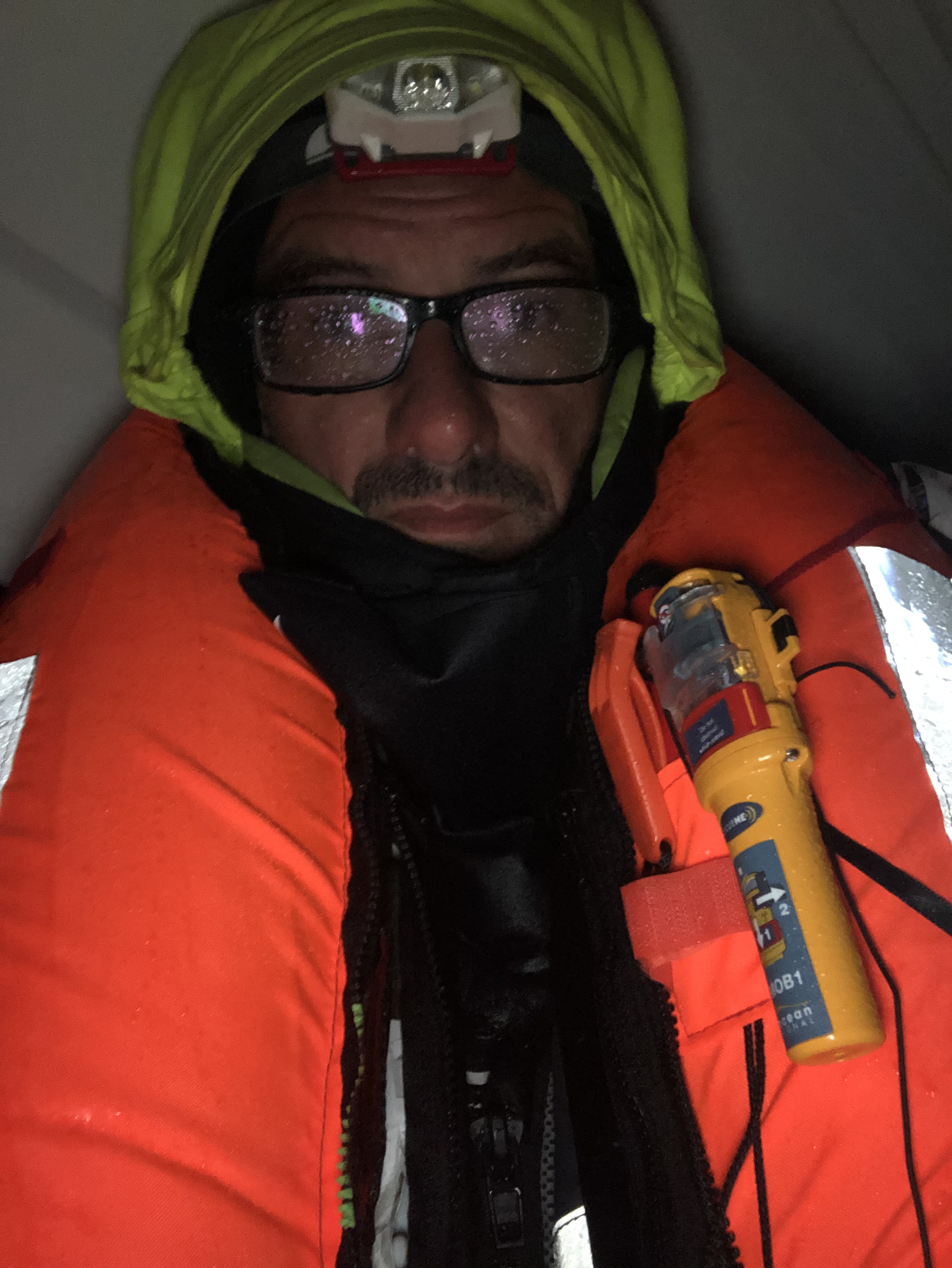 Une arrivée de nuit à Concarneau soldée par le déclenchement de mon gilet automatique lors de l’affalage à l’entrée du chenal.