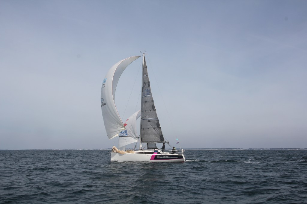 Une fois la bouée enroulée, direction Chimère au bon plein dans un premier temps puis au reaching, notre spi est prêt mais sur le mauvais bord, on change le spi de bord, on envoi, on envoi pas. Certains équipages envoi leur spi mais perdent beaucoup en cap, au reaching par 8/10 noeuds de vent, notre Sun Fast 3200 sous GV et J1 avance bien, on remonte sur l’avant de la flotte et on perd pas sur nos poursuivants.