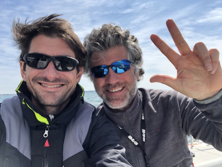 Cette journée pour notre équipage a été une journée de découverte et malgré le changement de bateaux nous retrouvons nos points forts, ça glisse bien au portant, et nos points faibles, c’est plus difficile au près. Il va falloir trouver les réglages.