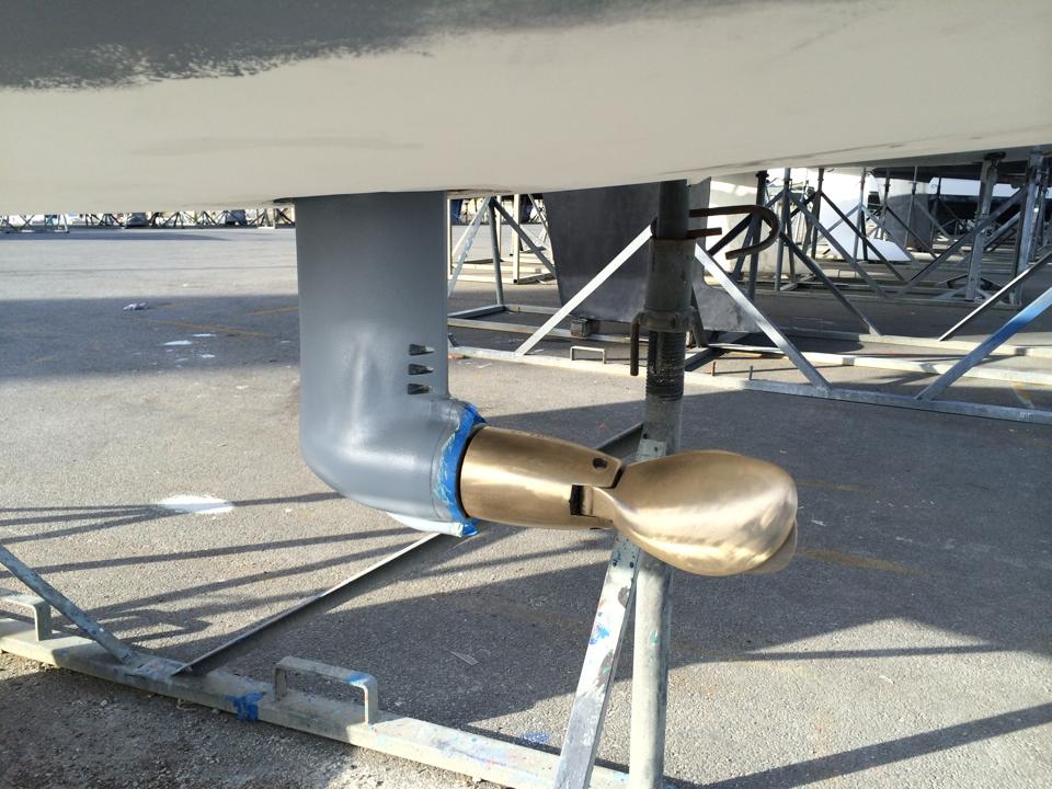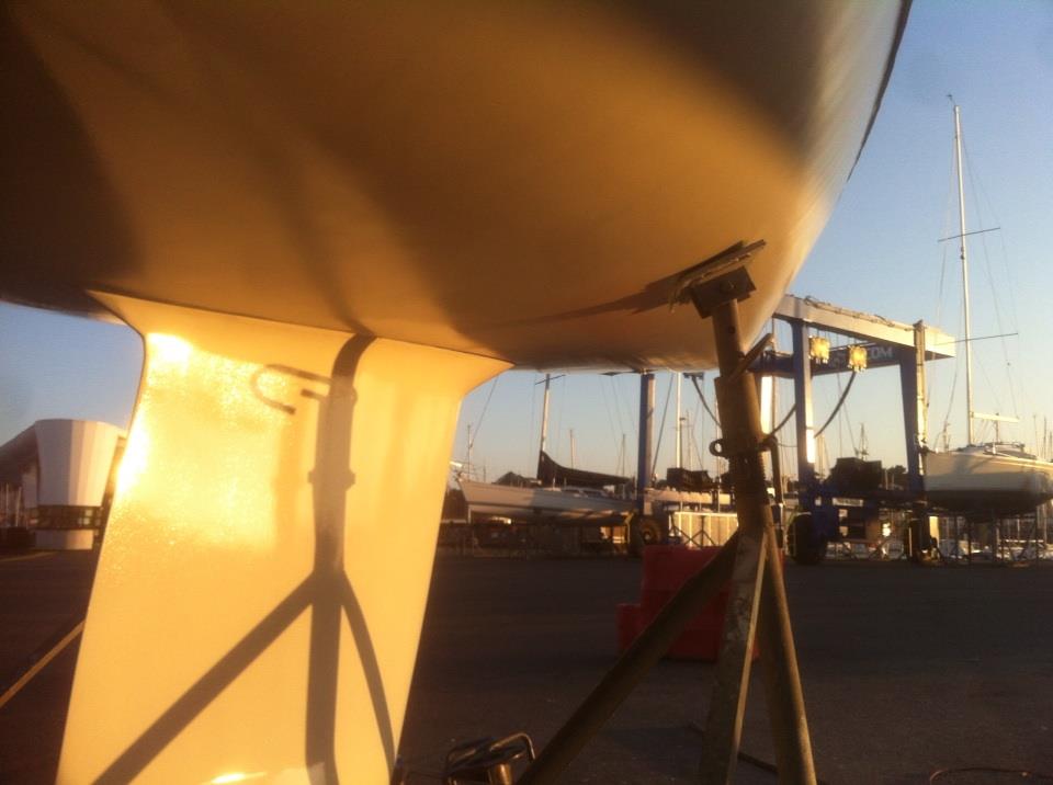 Maté et réglé par Gréement System (http://greement-systems.com/), notre mât a été parfaitement préparé. Restait à mettre en place l’amure du Code, les lazy-jacks et à reprendre certains éléments sur le pont: