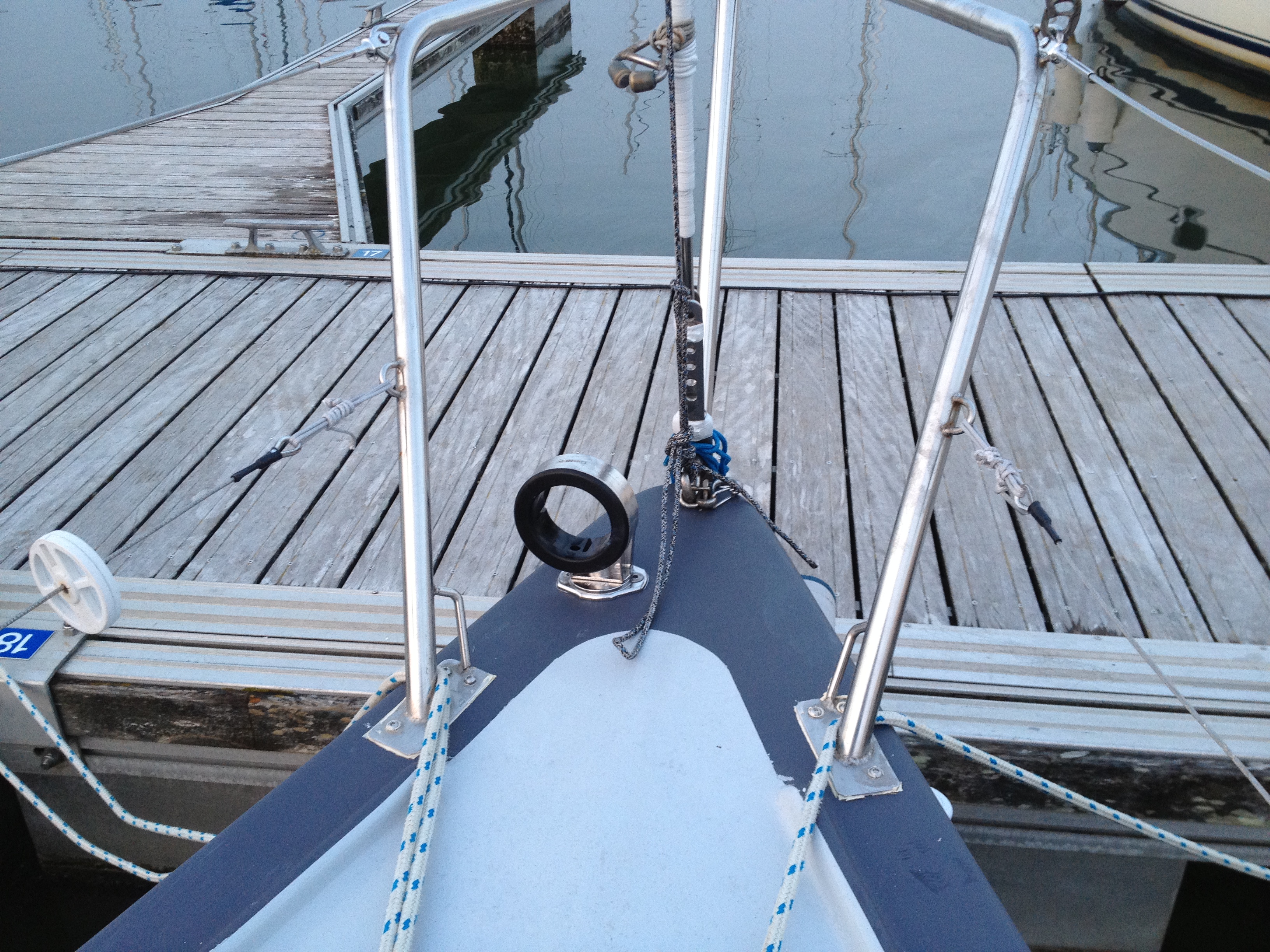 En attendant, nous profiterons de l’absence du gréement pour revoir la pose de l’accastillage, positionner des contre-plaques de renforts, faire réaliser une nouvelle barre franche, poncer, peindre et aménager l’intérieur. Bref, nous serons bien occupés.