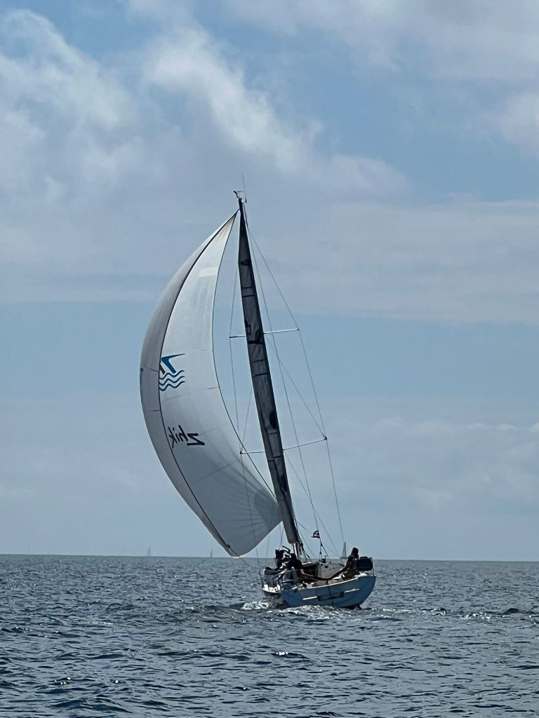 Sous spi, nous sommes régalés sur ce bord. A part une petite alerte lors de notre empannage ou le pilote automatique décide de décrocher.